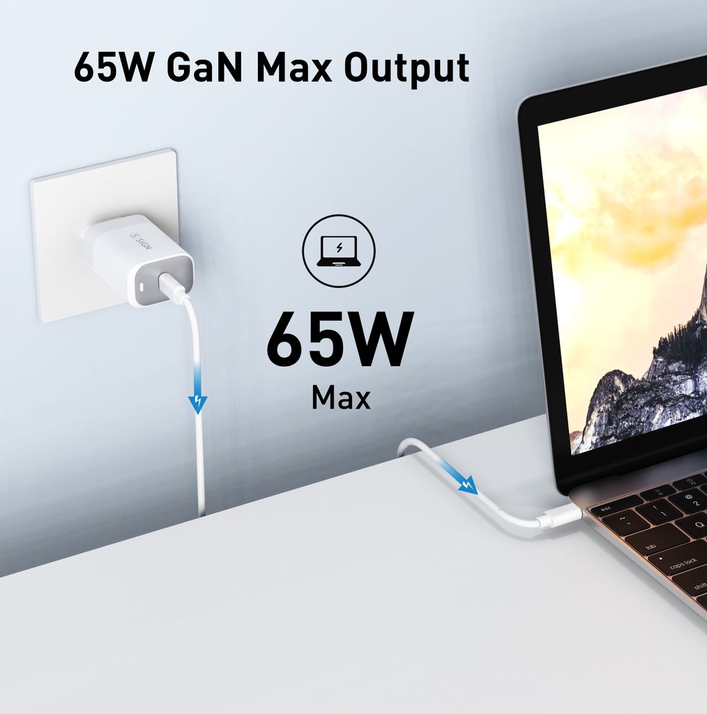 Kraft som merkes! SiGN 65W lader med USB-C PD er klar for å gi enhetene dine et skikkelig energiløft. Med opptil 65W utgangseffekt via USB-C får du rask og stabil lading av bærbar PC, mobil og nettbrett uten stress. Perfekt når batteriet begynner å blinke rødt og du vil raskt tilbake i gang. Med støtte for Power Delivery og Qualcomm QuickCharge 3.0 lades kompatible enheter effektivt og raskt. Opptil 50 prosent batteri på omtrent 30 minutter for enheter med hurtiglading gjør ventetiden kort. En kraftig og praktisk lader som passer like godt hjemme som på kontoret eller i vesken på reise.